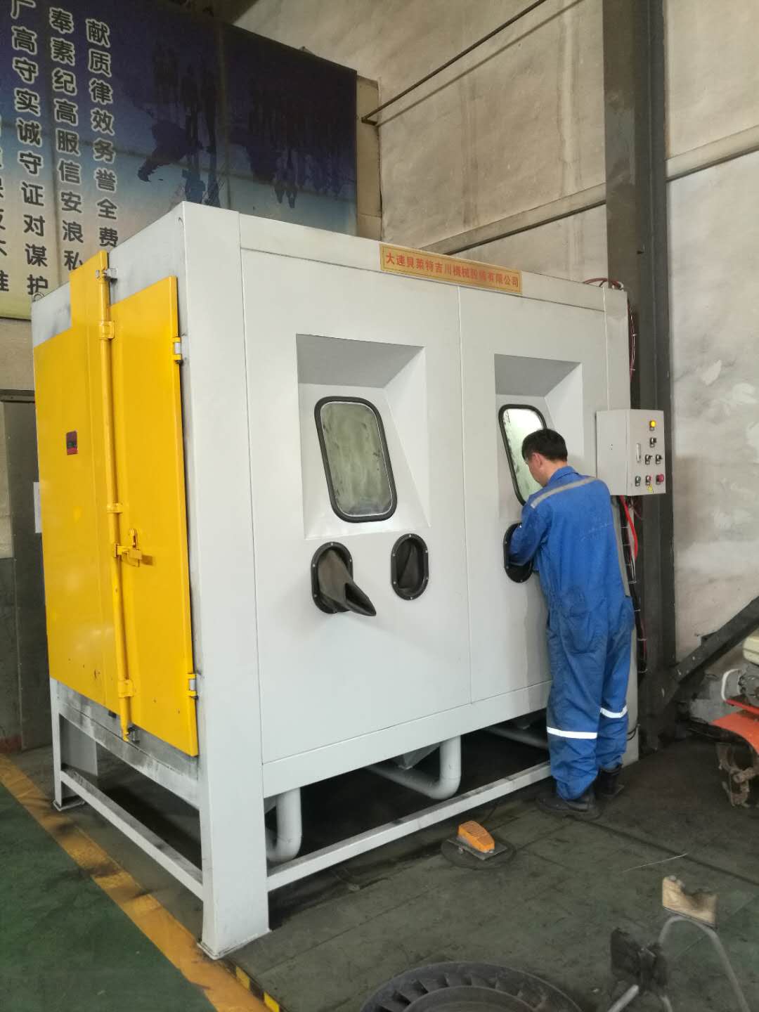 為某船用渦輪增壓器定制渦輪噴砂機順利完成驗