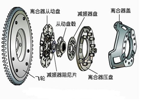 離合器又主動部分、從動部分、壓緊機(jī)構(gòu)、操縱機(jī)構(gòu)四部分組成。